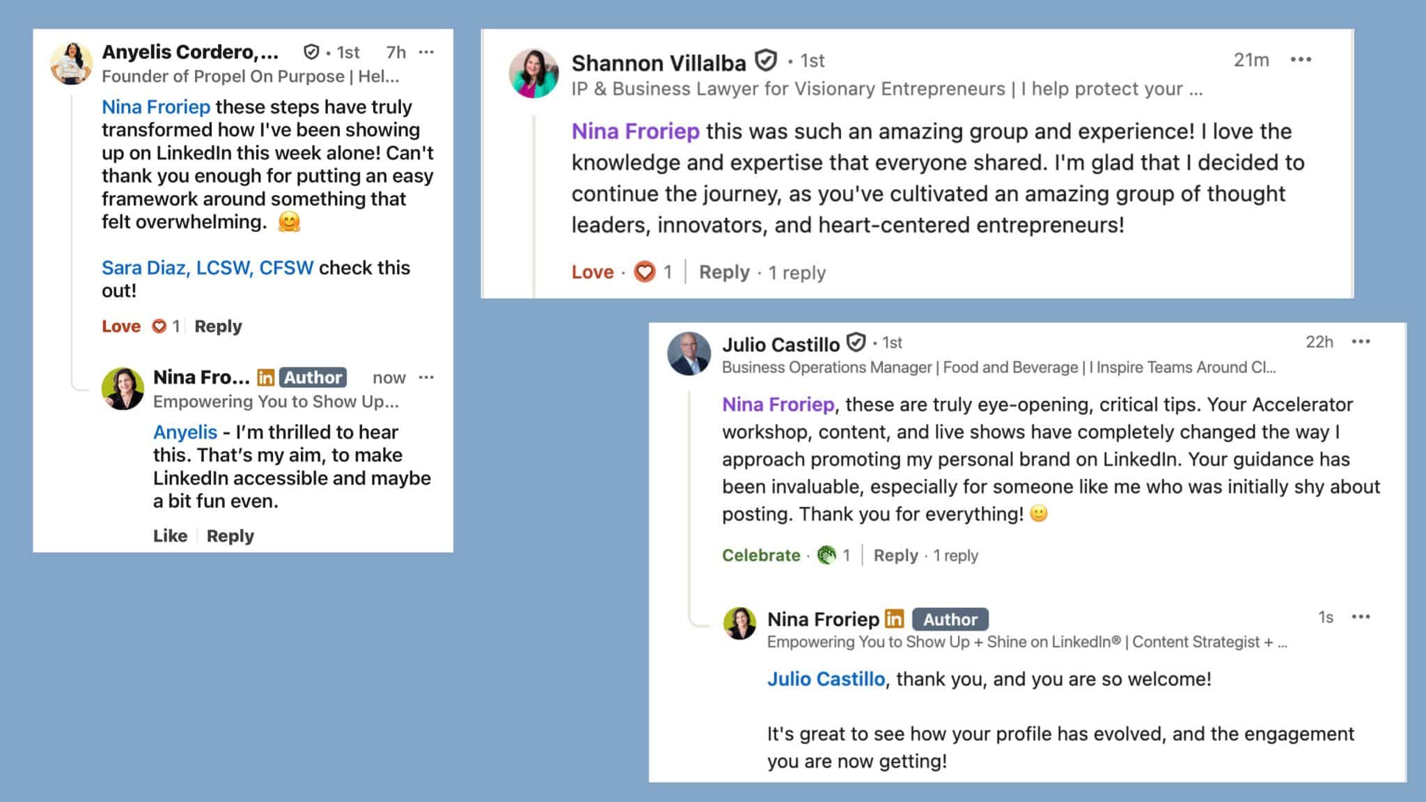 These things are a must to grow on LinkedIn, and Nina's the best!